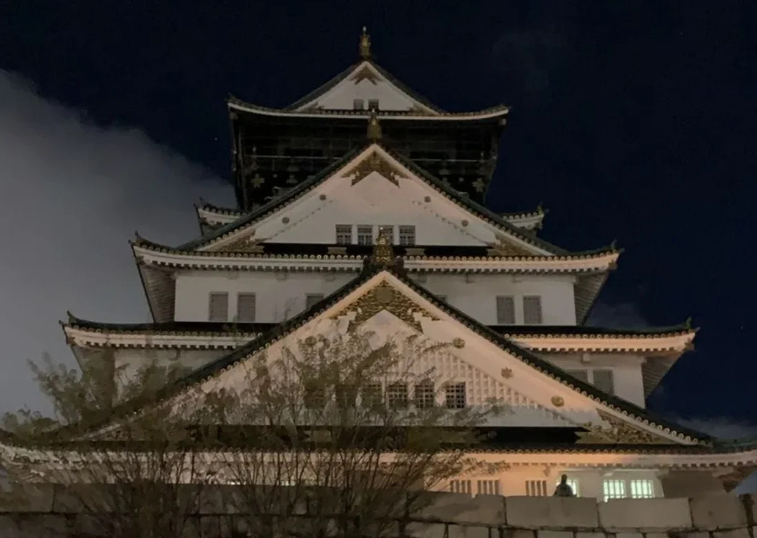 Apenas terminamos los trámites migratorios en el aeropuerto, salimos corriendo rumbo al hostel. Literalmente corriendo. El check-in cerraba a las 23:00 y habíamos llegado a las 19:00. Por suerte, llegamos a tiempo… por un minuto. Pero eso no fue todo: sin perder tiempo, salimos a comprar la cena al conbini más cercano, donde probé por primera vez productos cotidianos de Japón. Después de comer, caminamos hasta el Castillo de Osaka, un lugar que siempre había querido visitar.